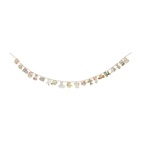 疲れて眠っちゃったデリバードと、お手伝いに来たポケモンたちがデザインされたガーランドだよ。