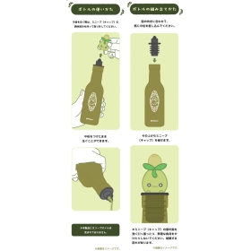 ミニーブをモチーフにしたオリーブオイルボトルだよ。中栓は取り外し可能で、他の瓶にも付け替えて使えるよ。