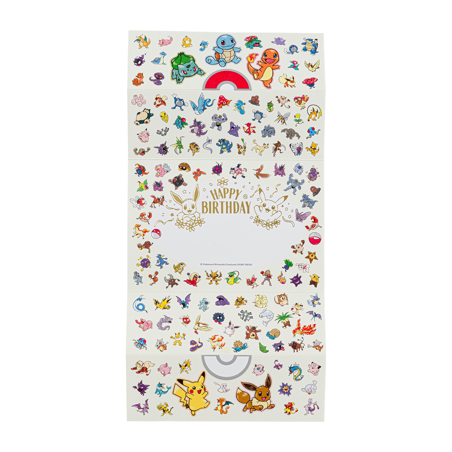 折りたたまれたカードをひらくことで、ポケモンたちがにぎやかに大集合するグリーティングカードだよ!
