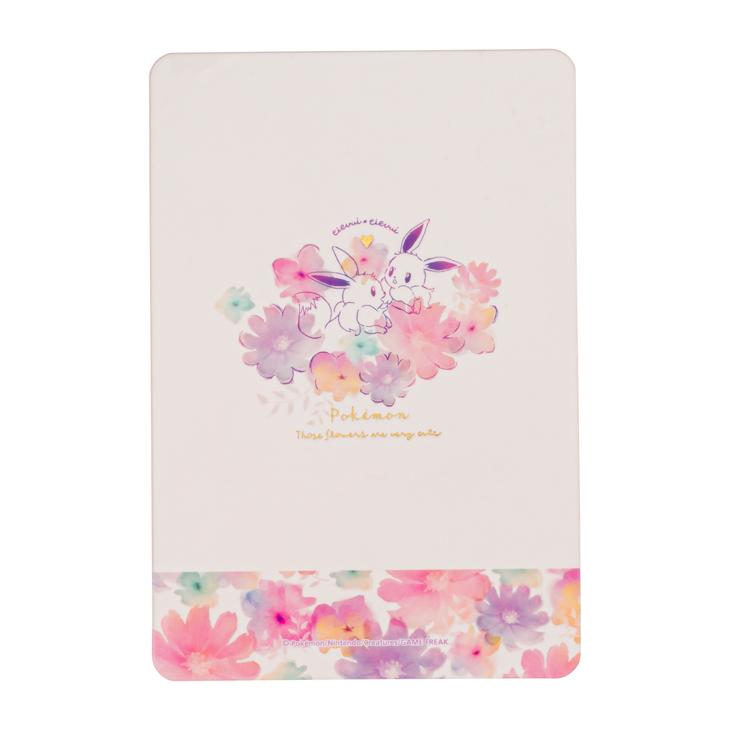 クリアな素材に、イーブイとお花がデザインされたグリーティングカードだよ!