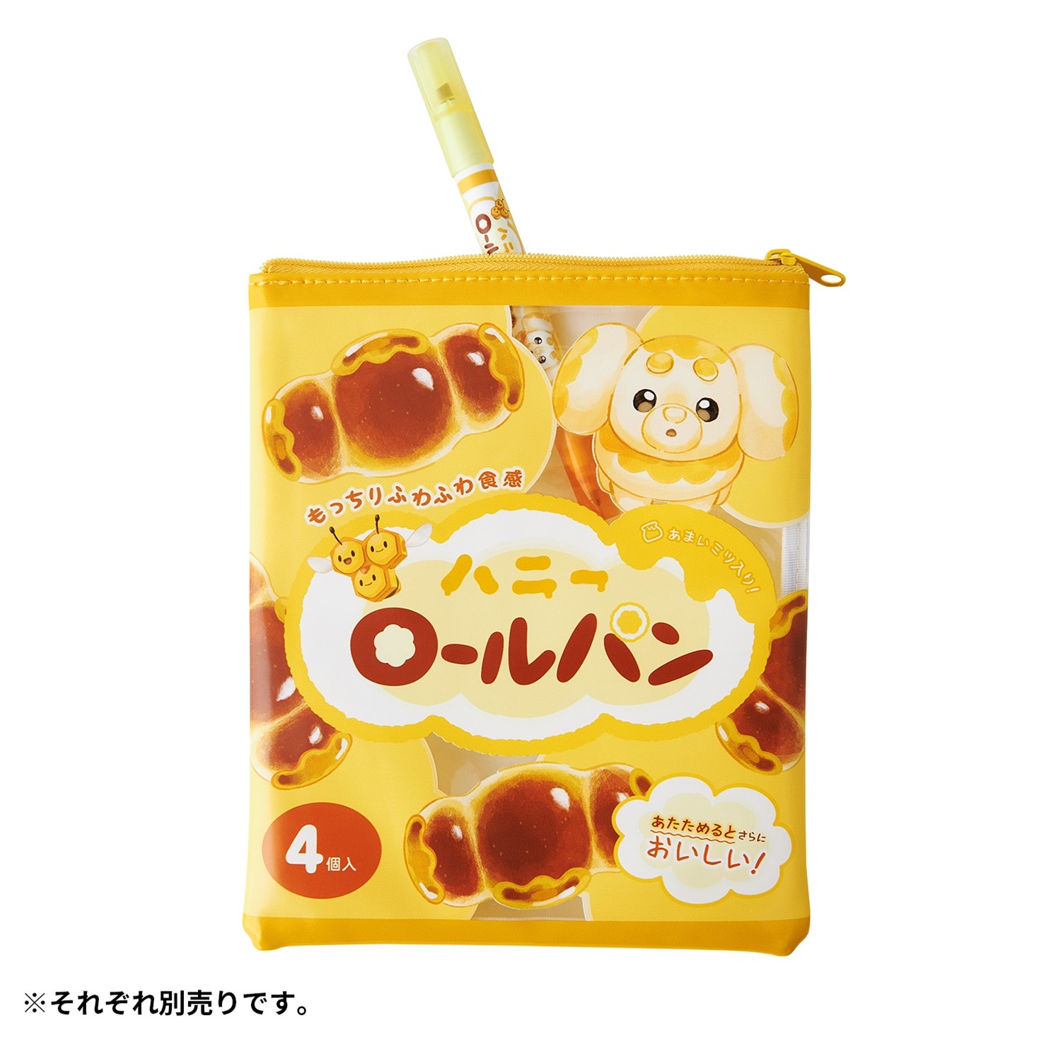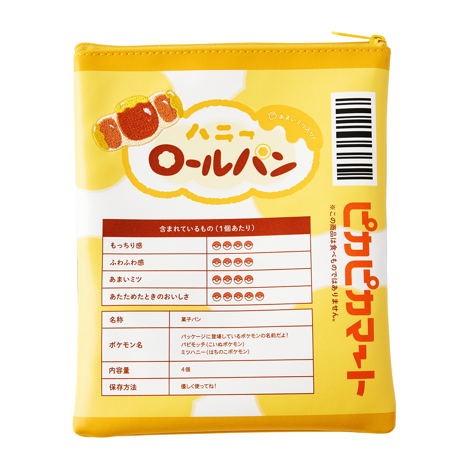 「もしポケモンの世界にスーパーマーケットがあったら?」をテーマにデザインされた、ピカピカマートのパンのパッケージ風ポーチだよ!
