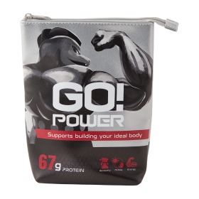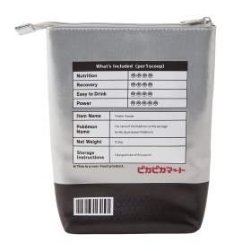 「もしポケモンの世界にスーパーマーケットがあったら?」をテーマにデザインされた、ピカピカマートのプロテインのパッケージ風ポーチだよ!