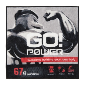 「もしポケモンの世界にスーパーマーケットがあったら?」をテーマにデザインされた、ピカピカマートのハンドタオルだよ。ゴーリキーがかっこいい!