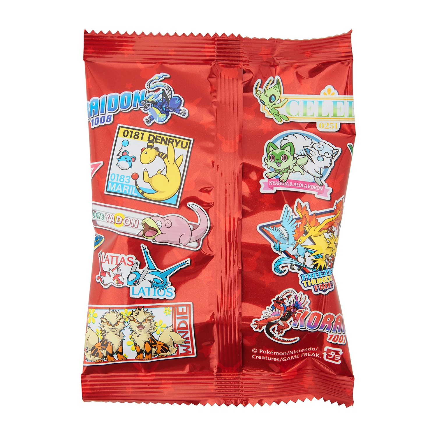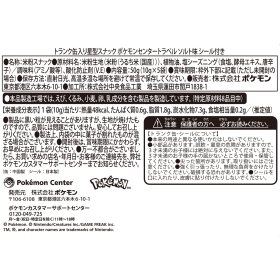 ソルト味のスナックが5袋と、ポケモンセンターのロゴシール1枚が入っているよ。