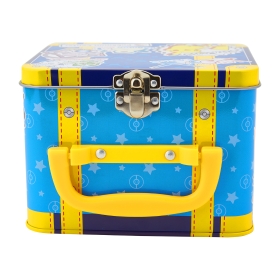 旅行トランク風の缶に入った、星のかたちのスナック菓子だよ。