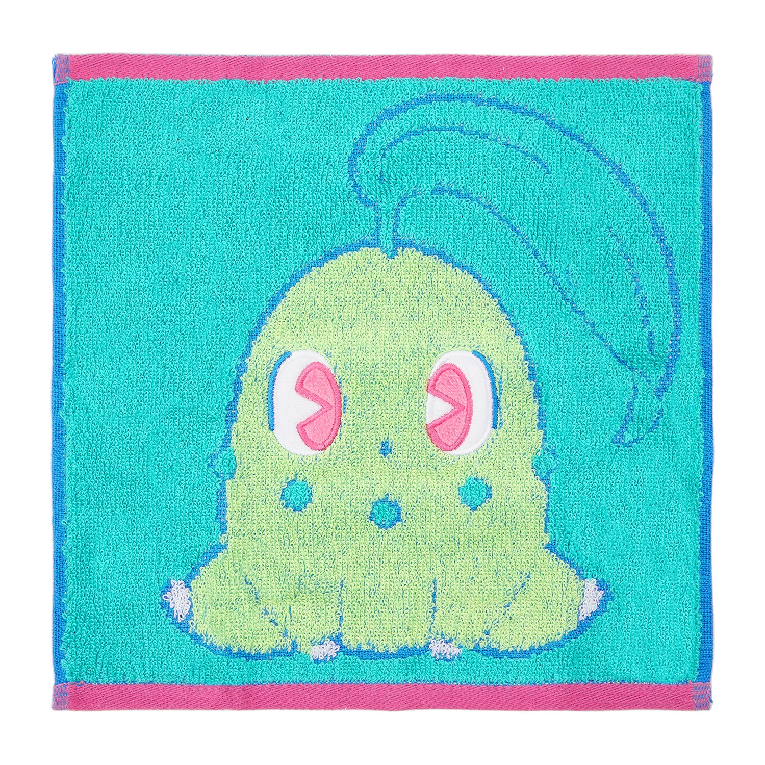 チコリータのジャガード織りのハンドタオルだよ!目のアップリケ刺繍がかわいいね!