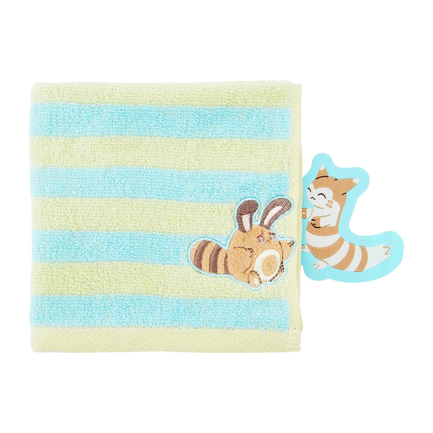 タオルをたたむと、オタチとオオタチがむぎゅ!っとハグしてるように見えるジャガード織りのハンドタオルだよ!