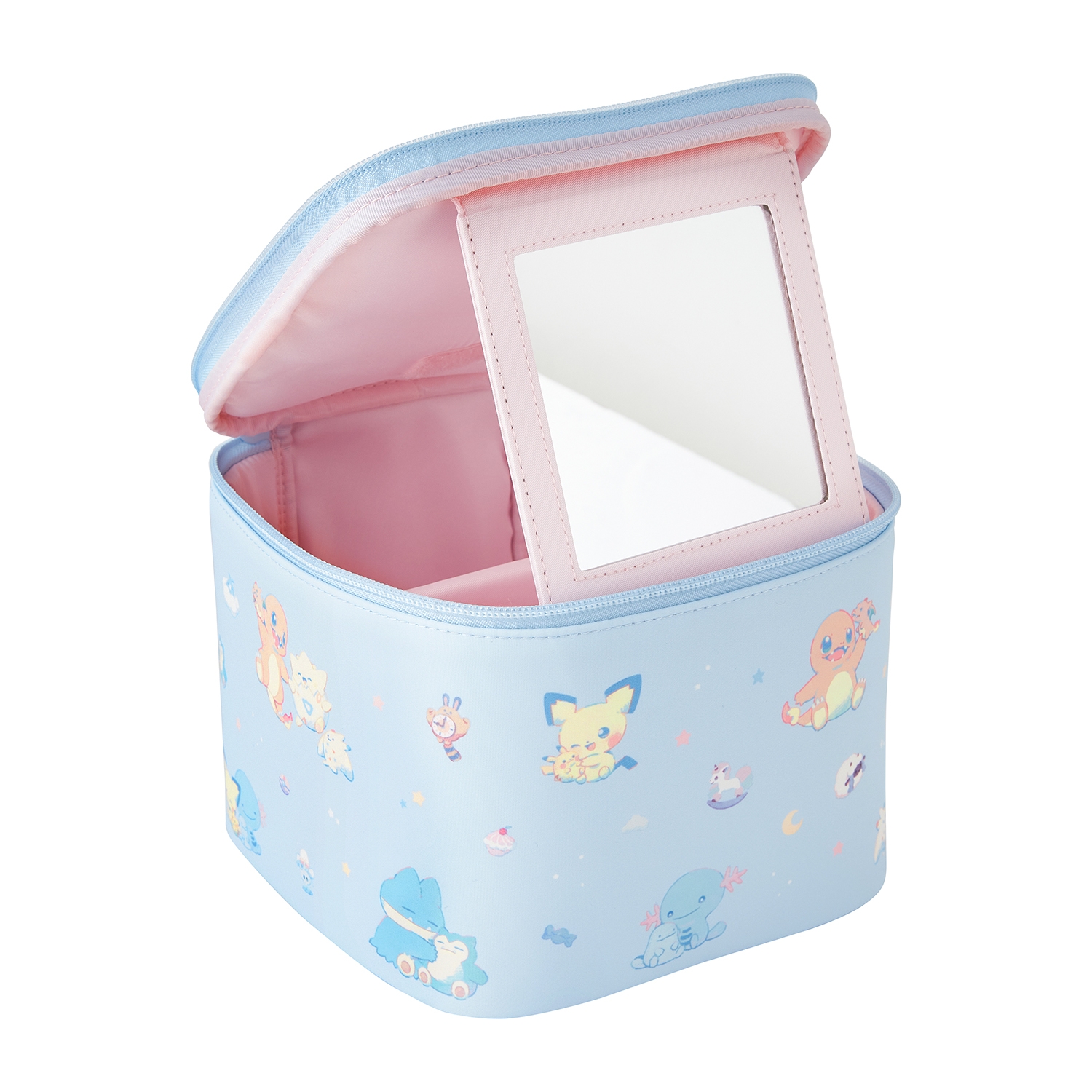 トレーナーからもらったお気に入りのぬいぐるみと一緒に過ごすポケモンたちを描いた、ミラー付きバニティだよ!