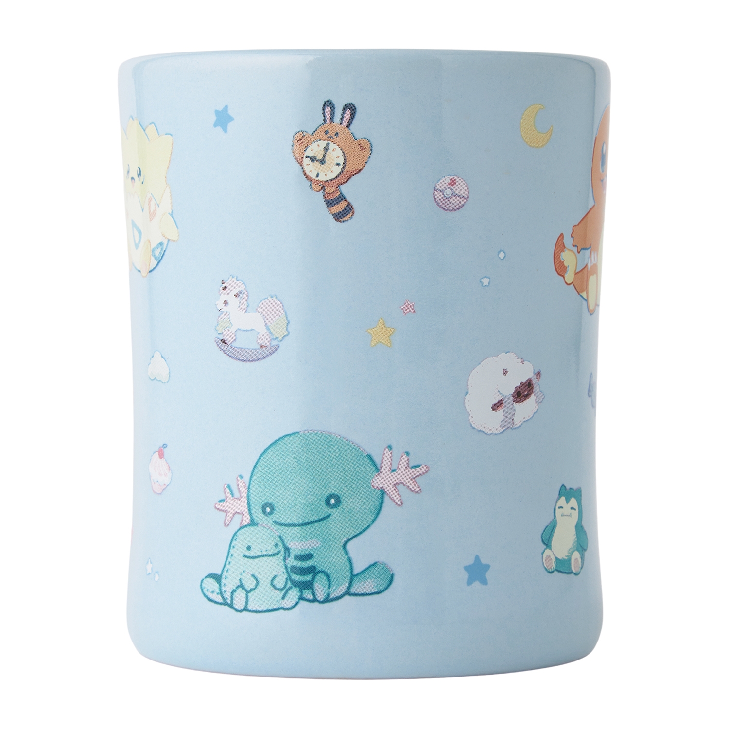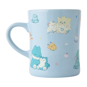 トレーナーからもらったお気に入りのぬいぐるみと一緒に過ごすポケモンたちを描いた、マグカップだよ!