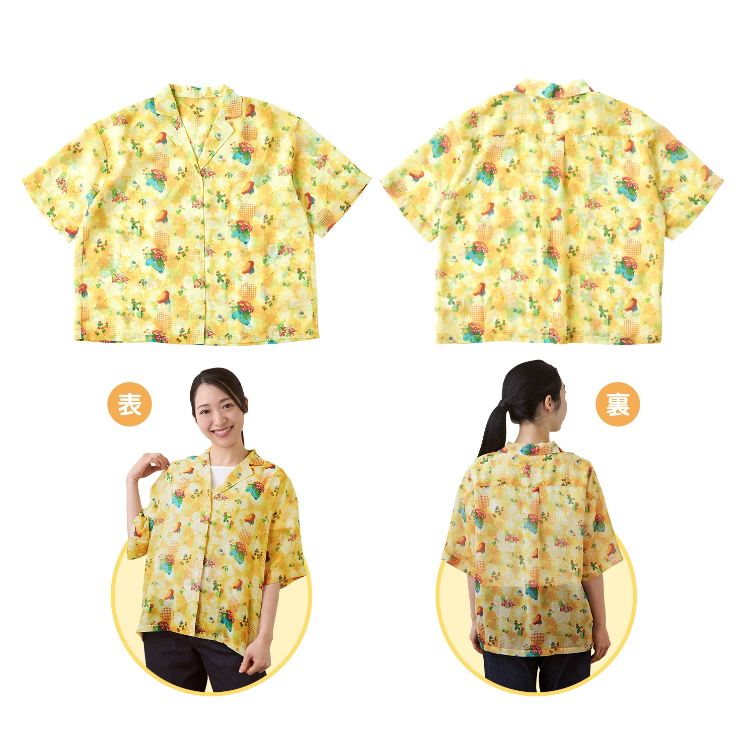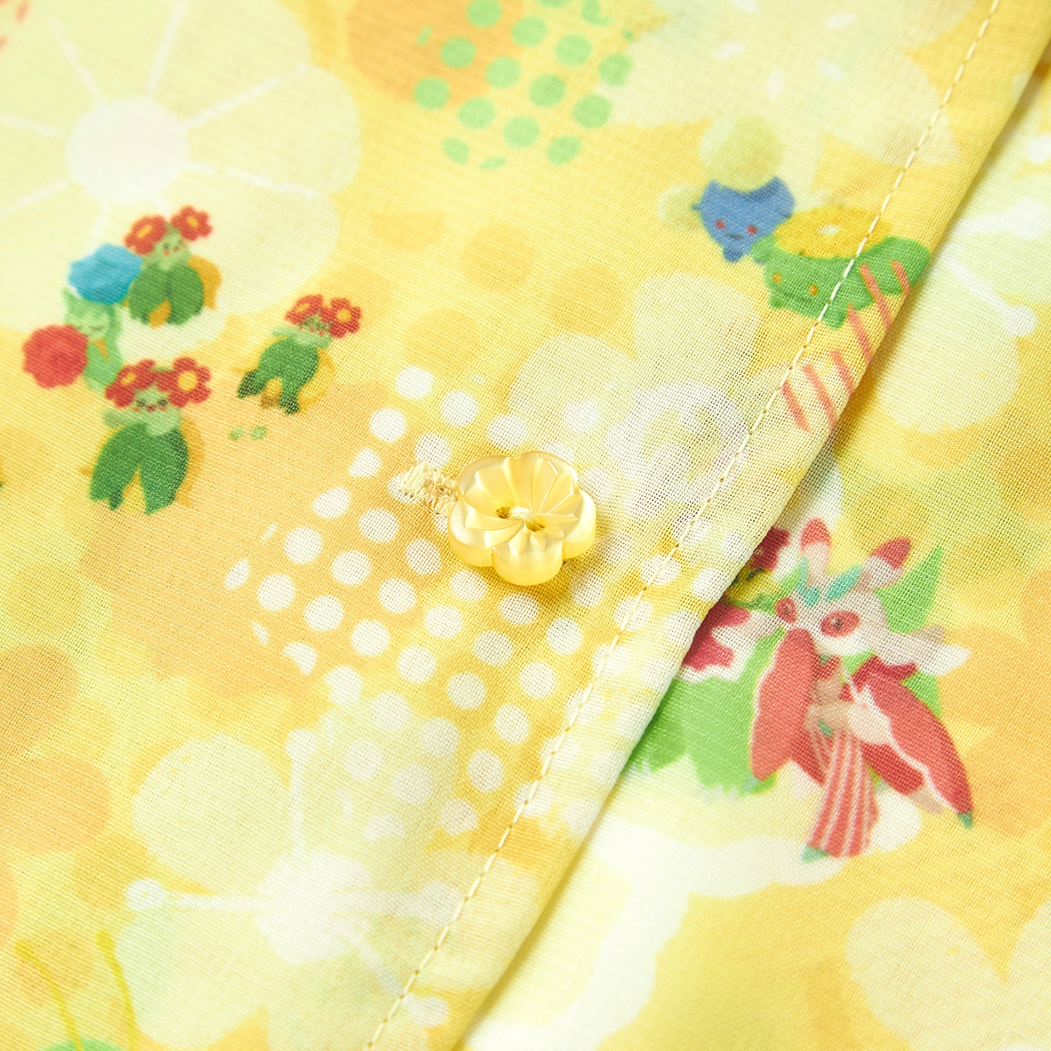 お花が特徴的なポケモンたちがデザインされた、シアー生地のシャツだよ。お花の形のボタンもかわいい!