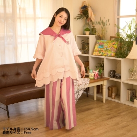 【トップス】身丈:70cm、身幅:56cm 【ボトムス】総丈:93cm、ウエスト:74cm モデル身長:154.5cm