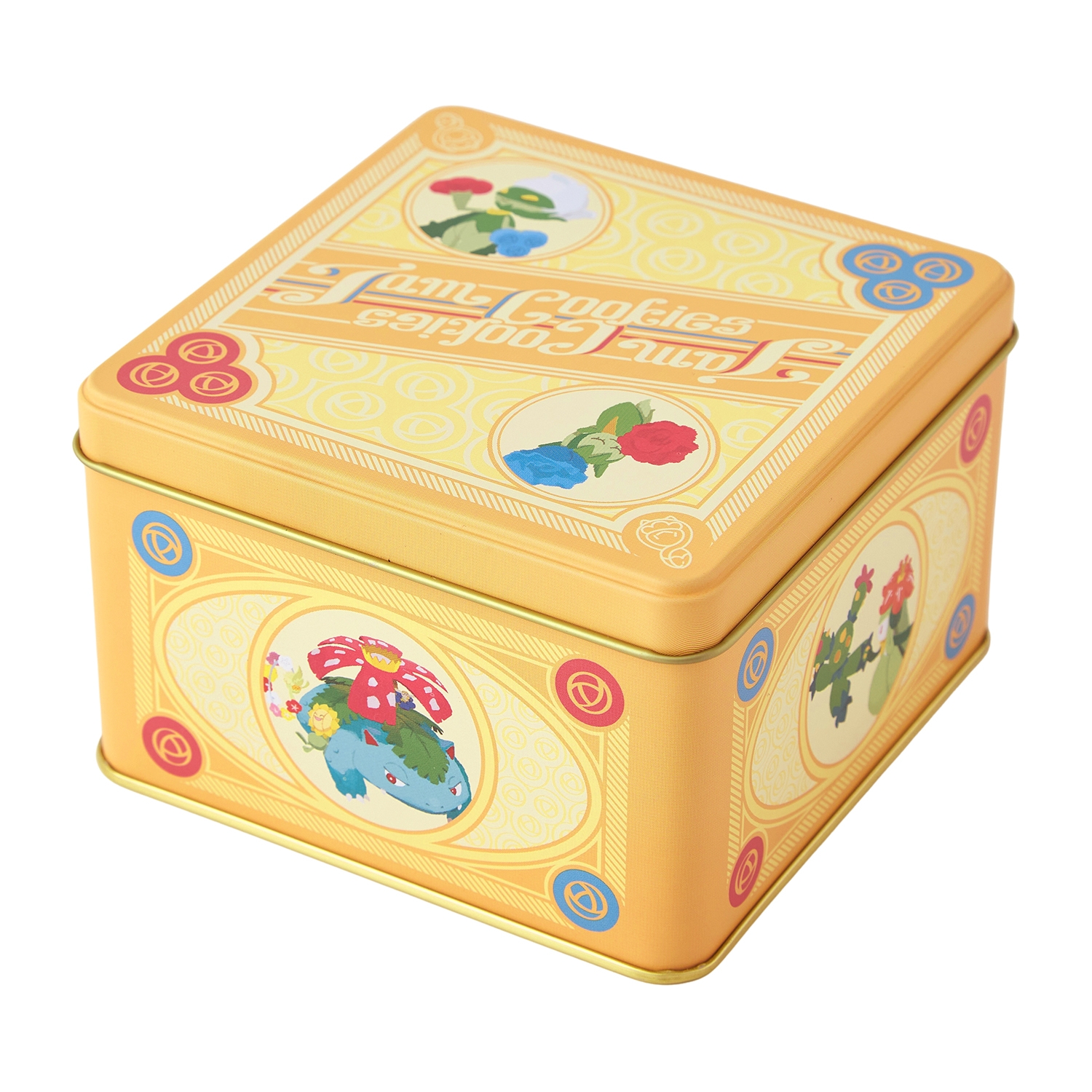 缶には、お花が特徴的なポケモンたちがデザインされているよ。