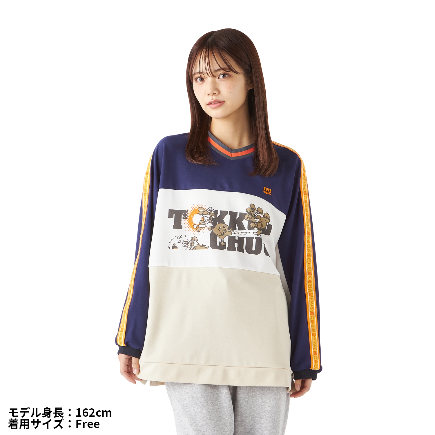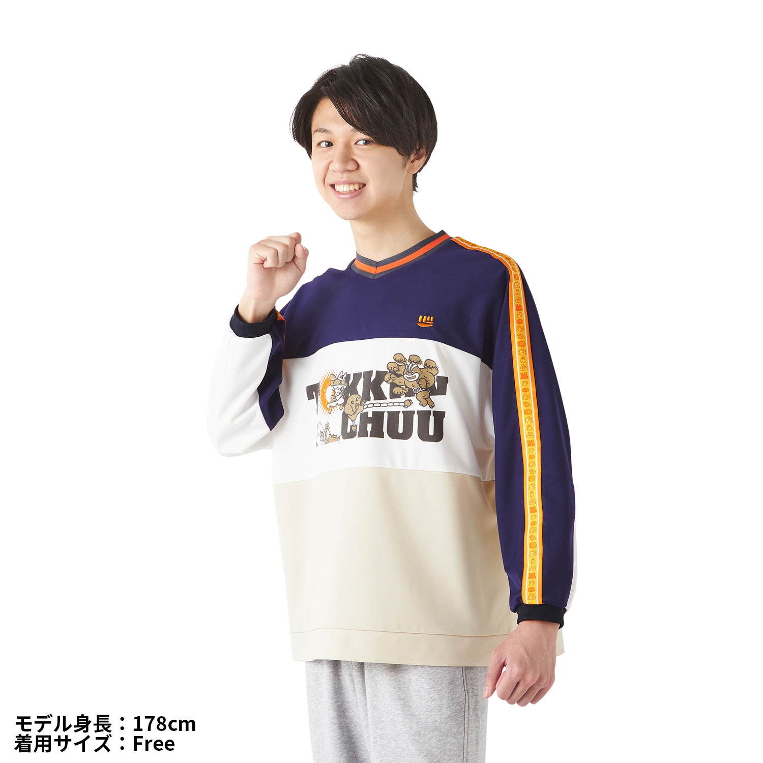 両袖のいろんな「どうぐ」をあしらったラインが遊び心たっぷり!胸元や背面にはワンポイント刺繍入りだよ!