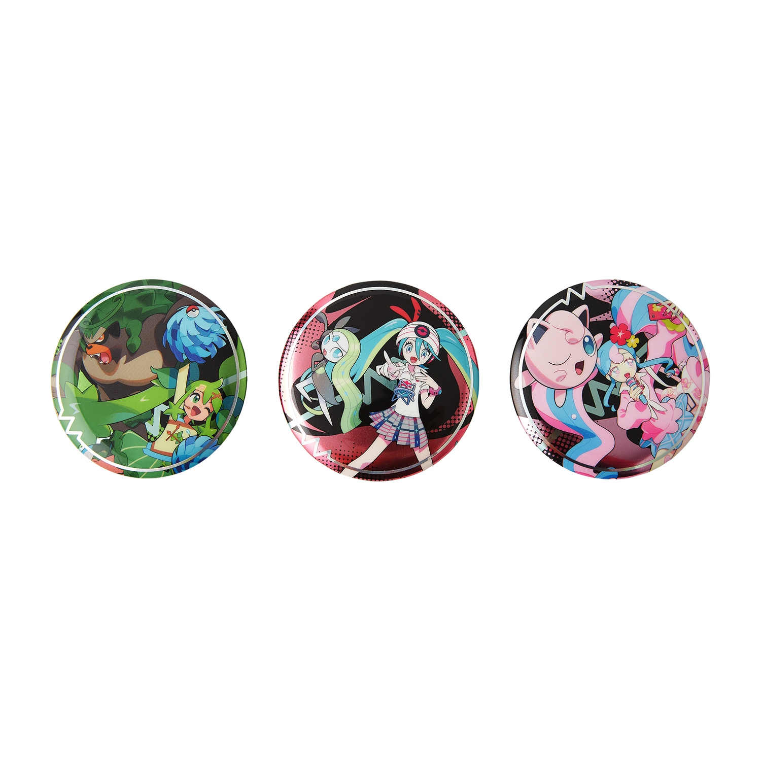くさ、エスパー、フェアリータイプの、初音ミクと相棒ポケモンのユニット、「miracle bloom*」の缶バッジセットだよ!