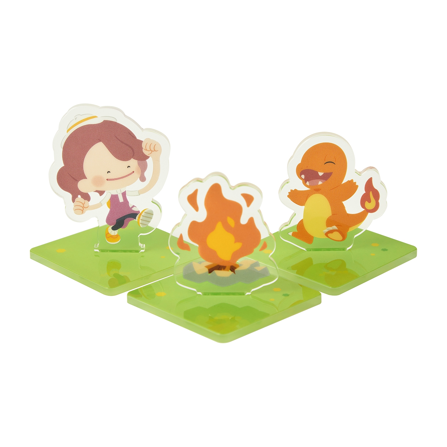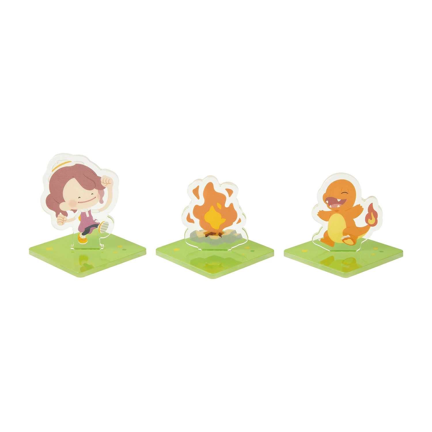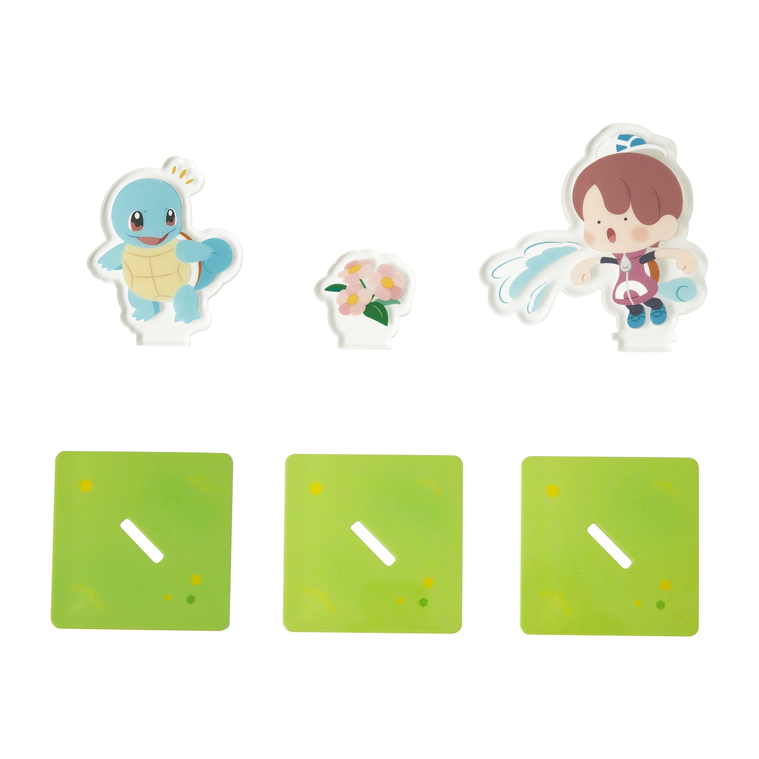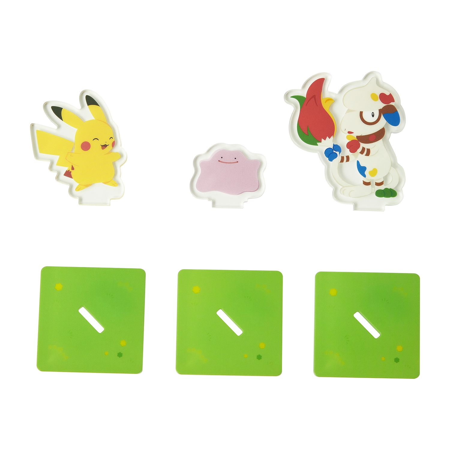 ゲーム中に登場するポケモンたちのアクリルスタンドだよ。並べやすい四角形の台座仕様だよ。たくさん並べて飾ろう♪