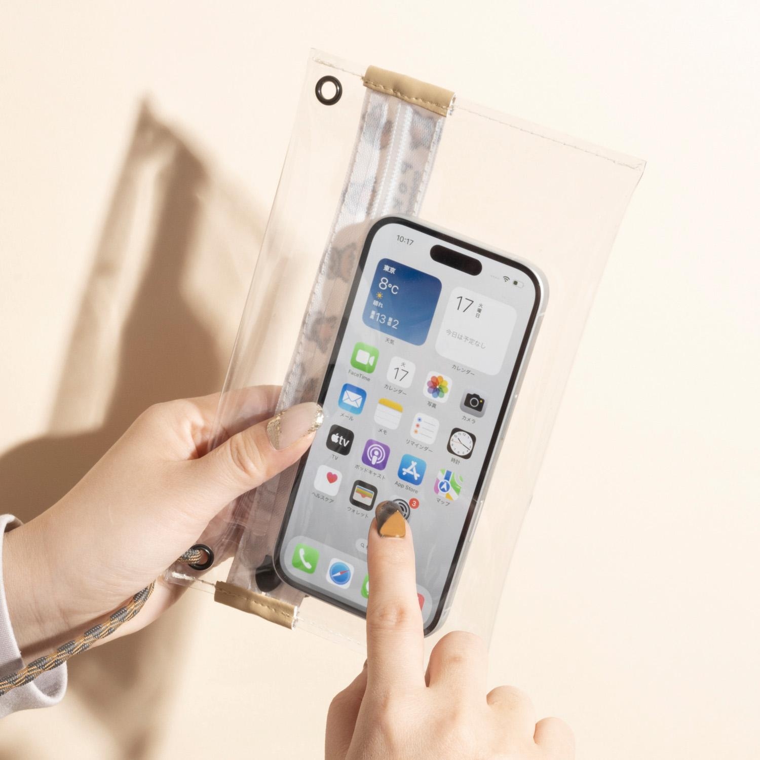 スマートフォンを入れたまま画面操作が可能でお出かけ時のサブポーチに最適だよ!