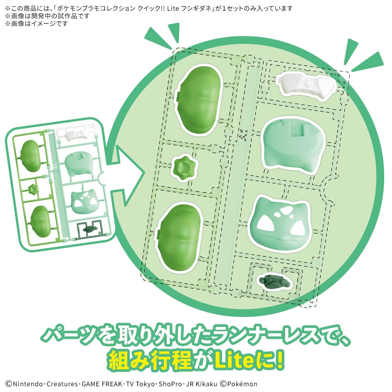 パーツを取り外す工程をなくしたランナーレス仕様の、 「ポケモンプラモコレクション クイック!! Lite」よりフシギダネが登場!