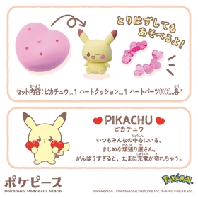 ハートのクッションにピカチュウとクリアのハートがちょこんとのった てのひらサイズのドールだよ!