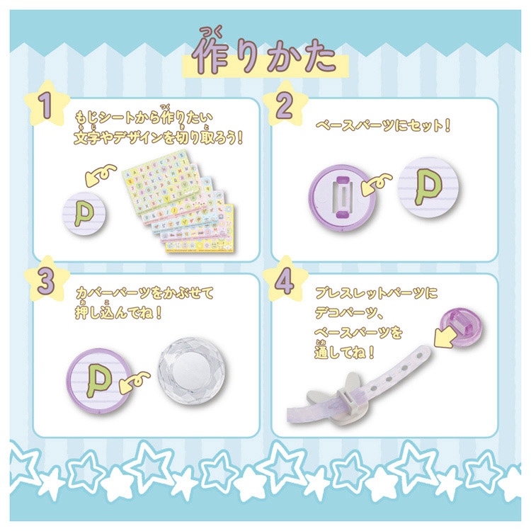 ④ブレスレットパーツにデコパーツ、ベースパーツを通してね!