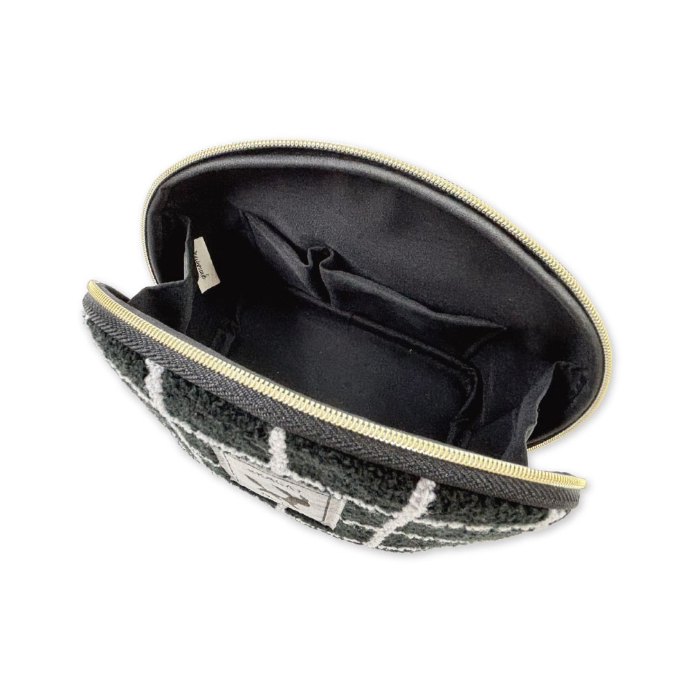くすみカラーの「もこもこなサガラ」と「コーデュロイ」素材のポーチ。