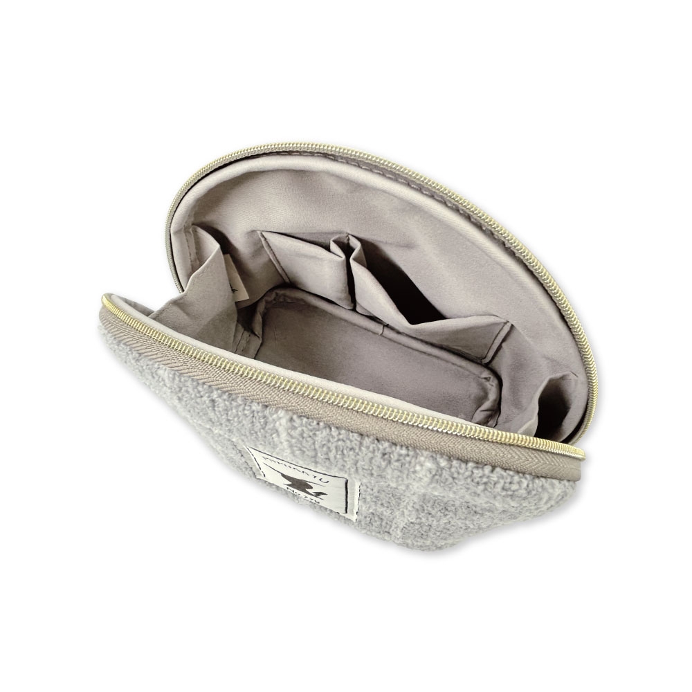 くすみカラーの「もこもこなサガラ」と「コーデュロイ」素材のポーチ。