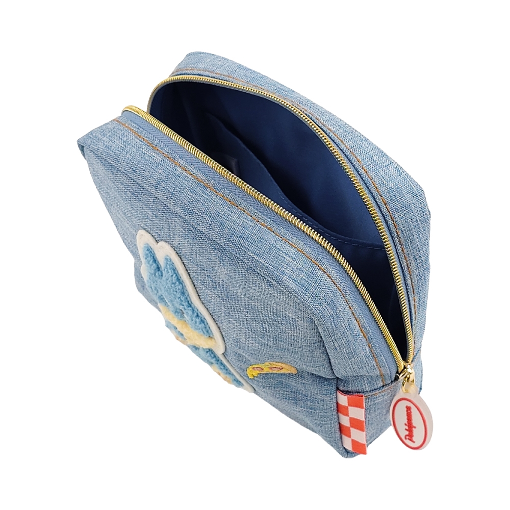 サガラ刺繍のゴンべが可愛いスクエアポーチ。