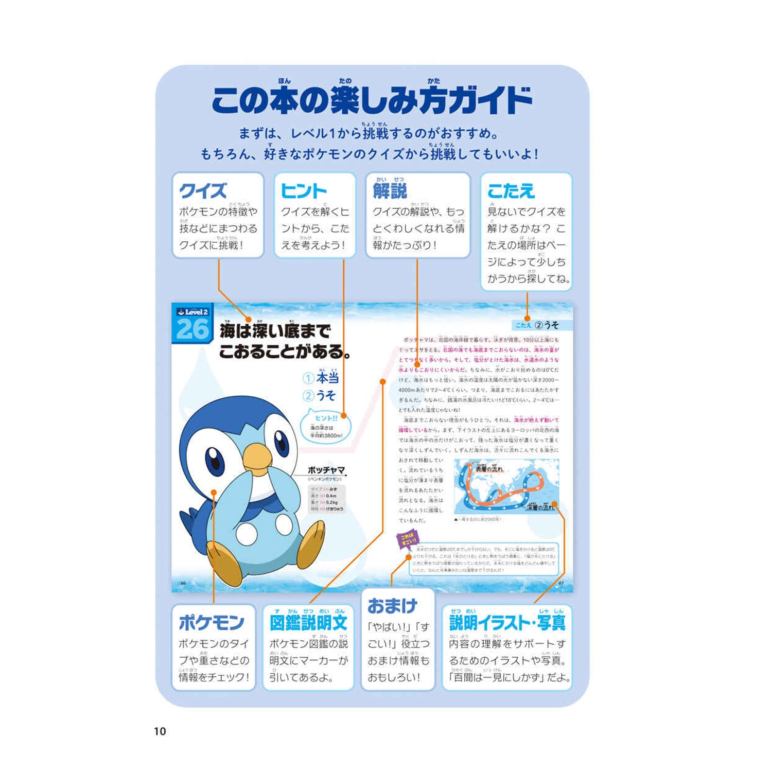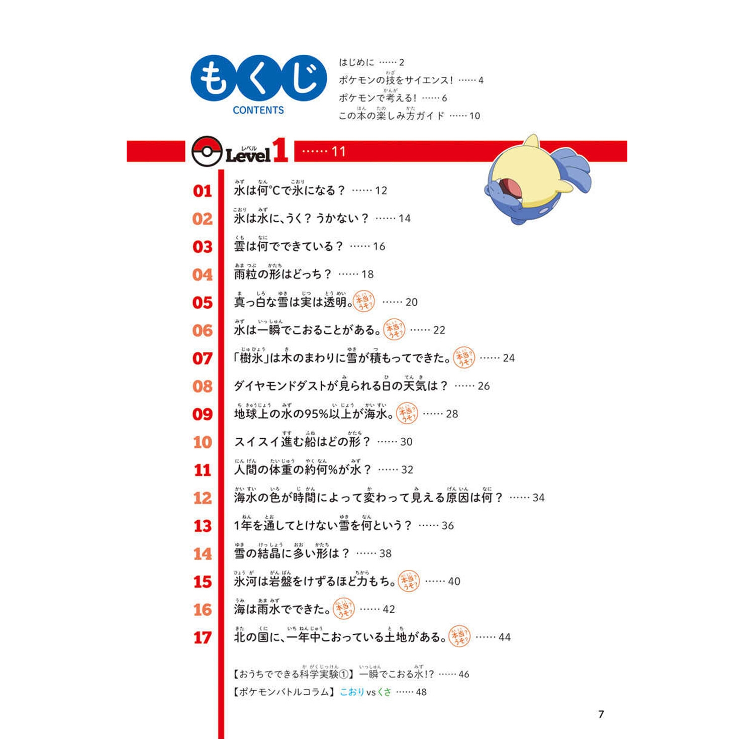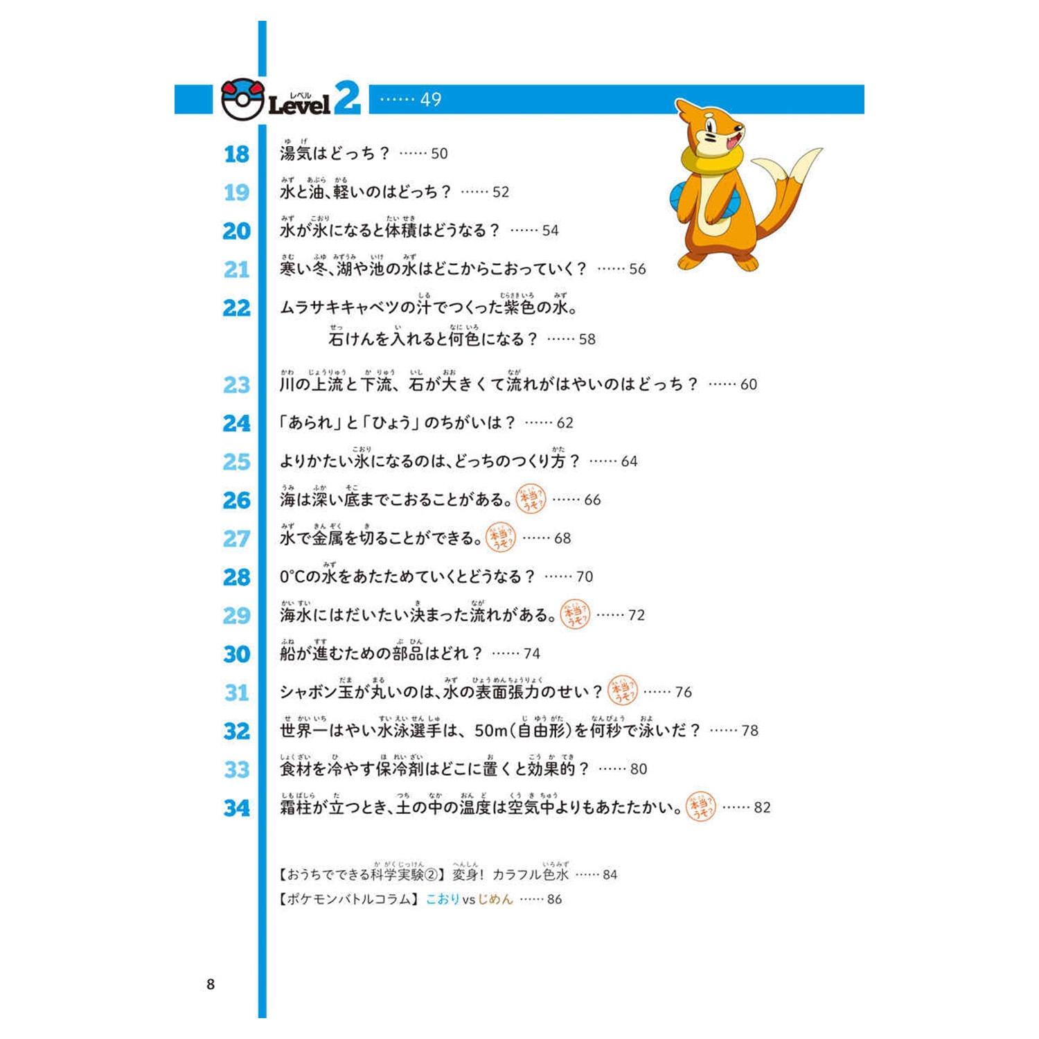 「みず・こおり」では「水は何度で氷になる?」「氷は水にうく?うかない?」など科学の知識をクイズ形式で紹介。