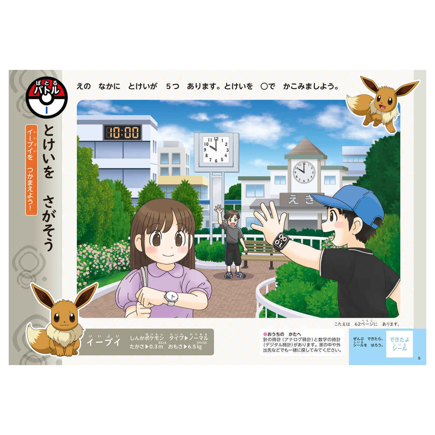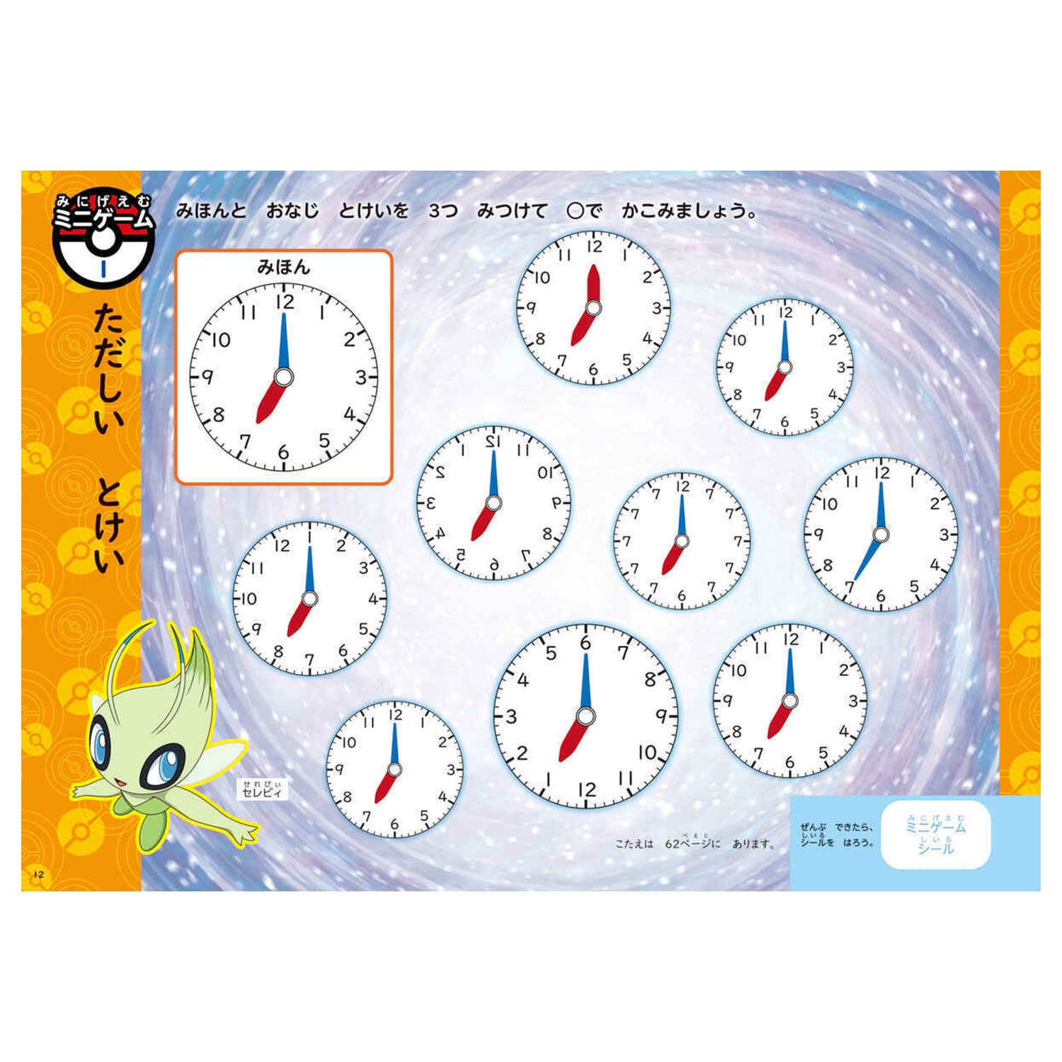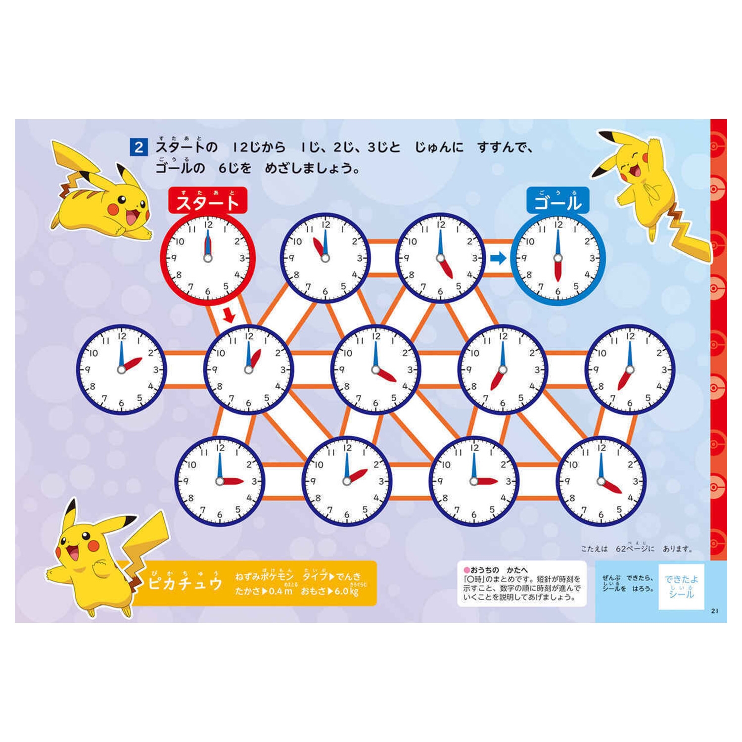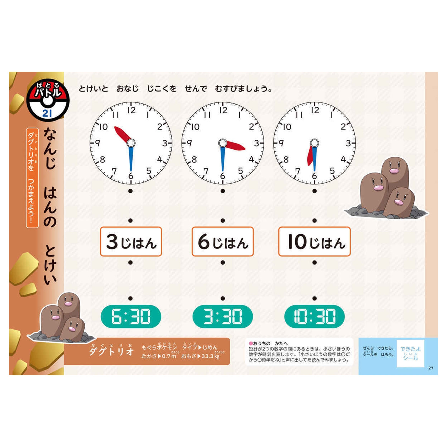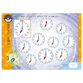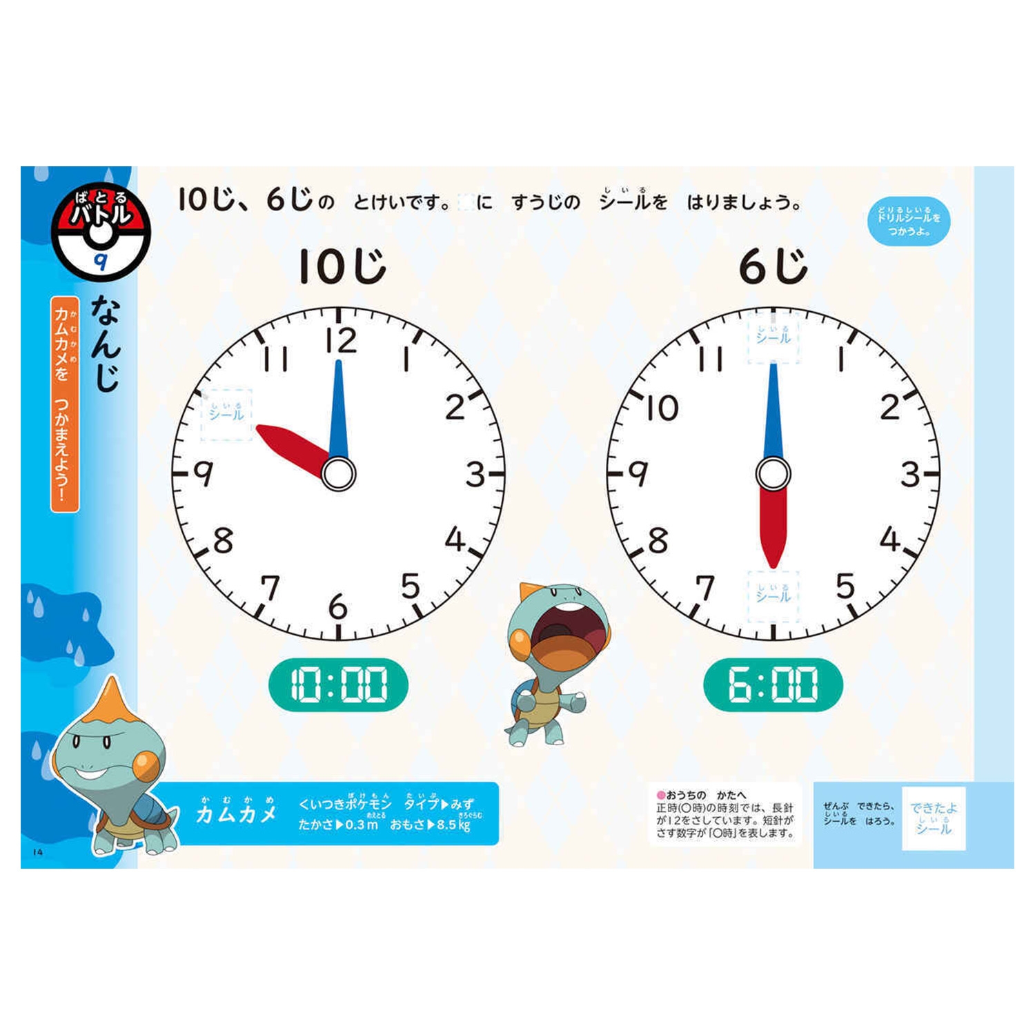 幼児~小学1年生向けに、時計の読み方をポケモンと楽しく学べるドリルだよ。