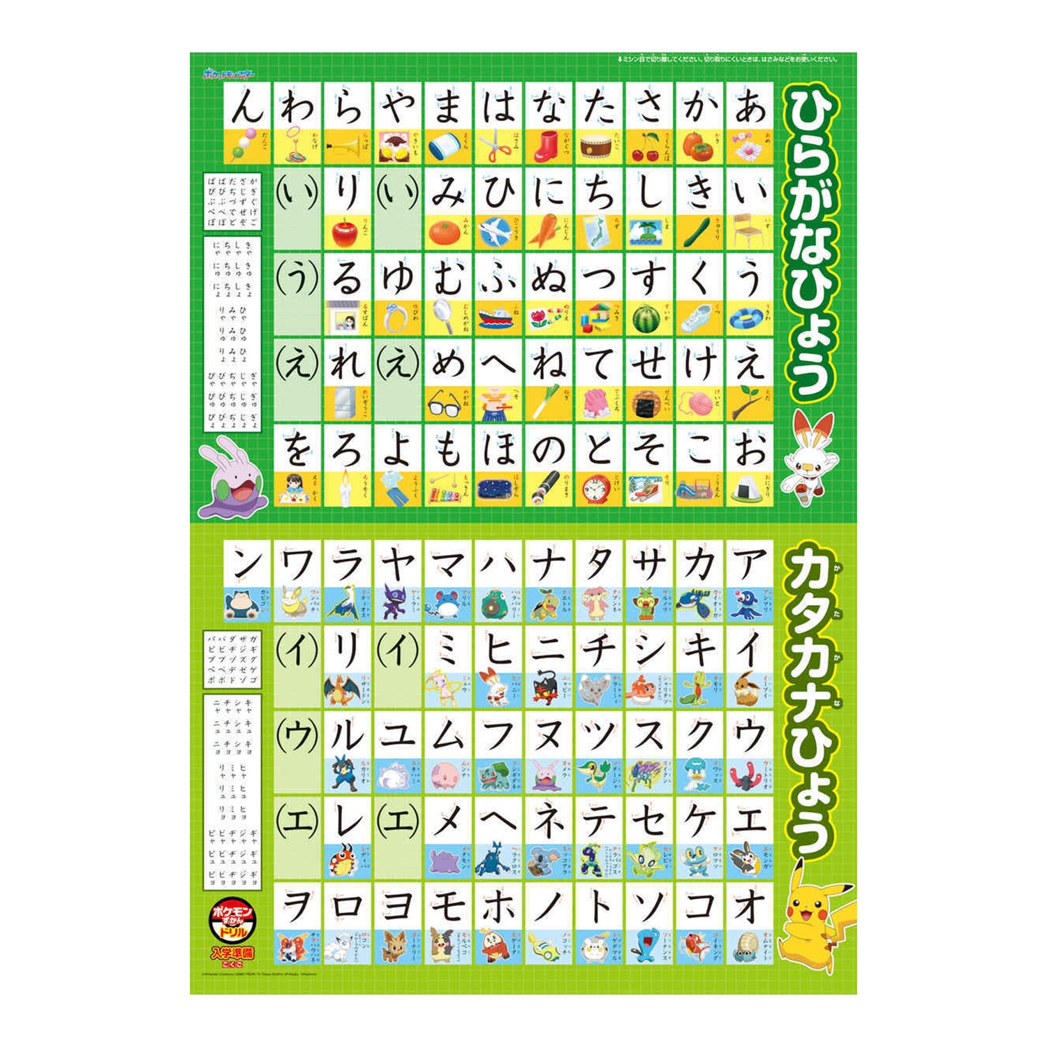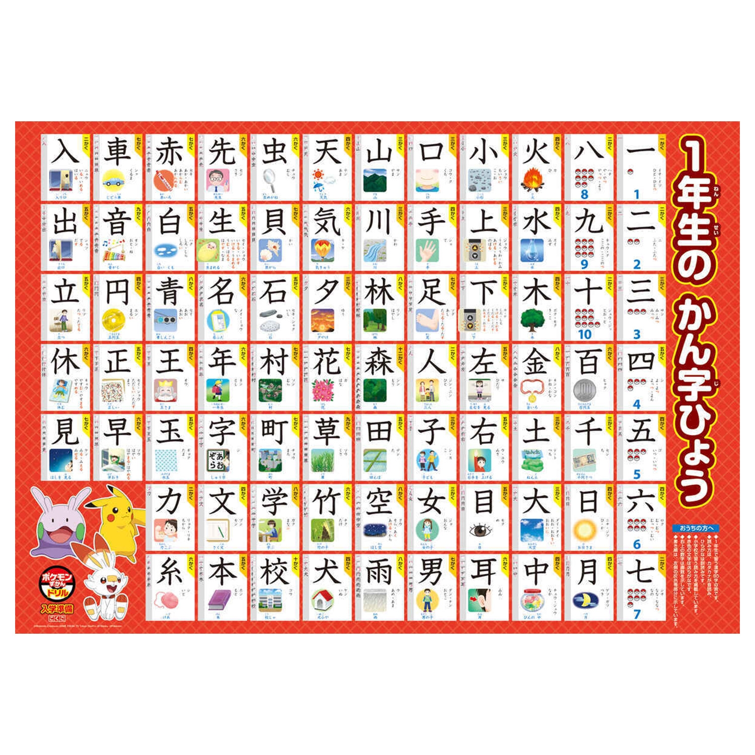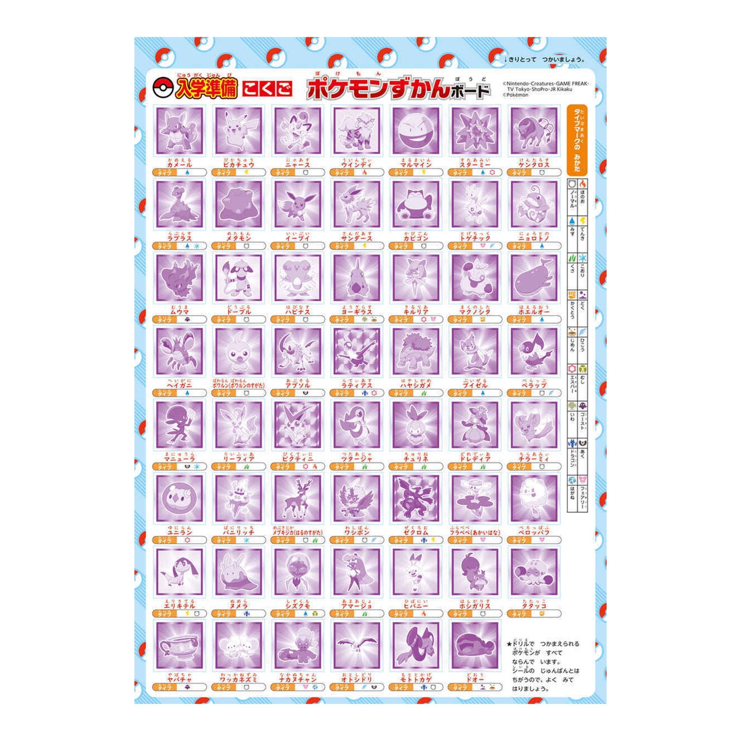 キラキラのポケモンずかんシール、学習用ドリルシールに加え特別教材ポスター「ひらがなひょう・カタカナひょう」「1年生のかん字ひょう」も付いているよ。