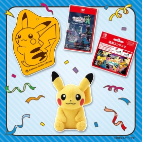 ピカチュウのダイカットギフトバッグに入った『Pokémon LEGENDS Z-A Nintendo Switch 2 Edition』と、ポケモンセンターオリジナルのグッズを、専用配送箱でお届け!