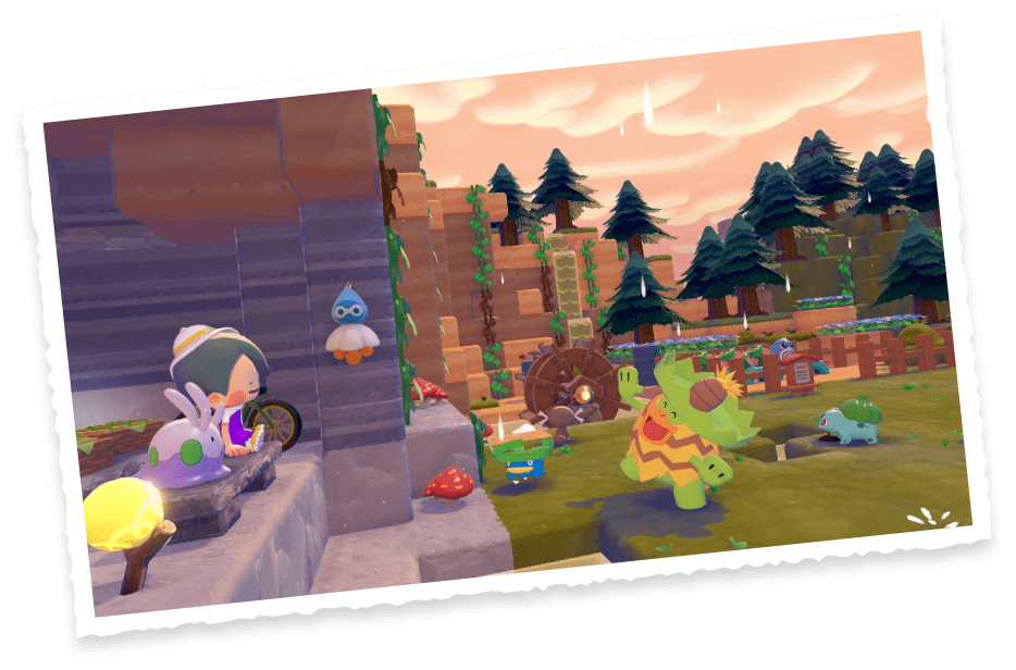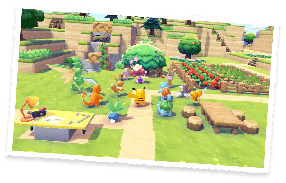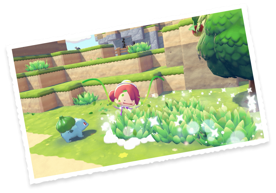 ニンゲンにへんしんしたメタモンは、出会ったポケモンたちのわざを覚えることで、できることがどんどん増えるよ。