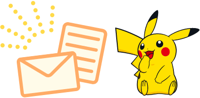 ポケモンセンターオンラインから、メールマガジンで新商品やポケモンの最新情報をお届けするよ。