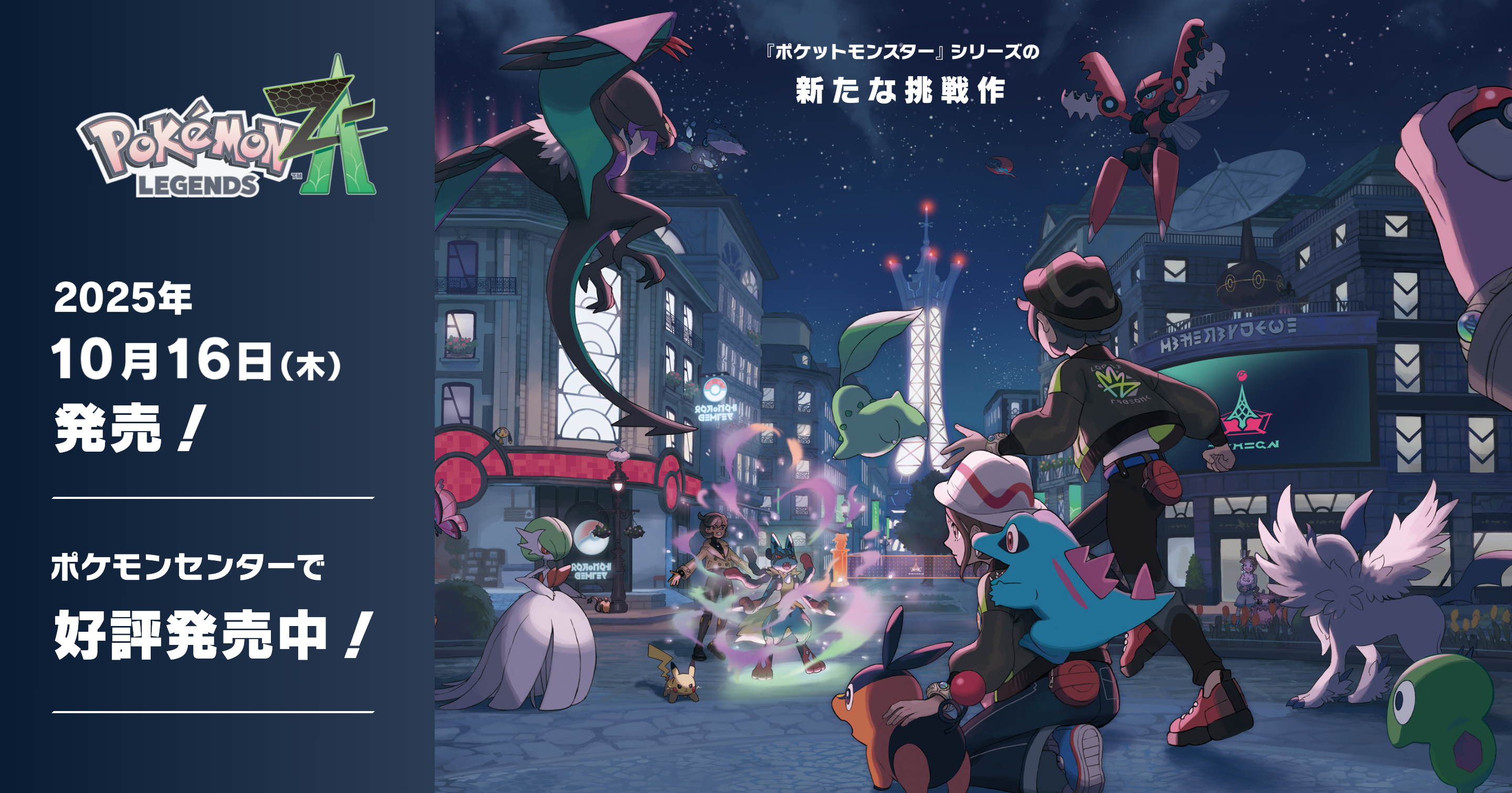 いよいよ10月16日(木)に発売する『Pokémon LEGENDS Z-A』/『Pokémon LEGENDS Z-A Nintendo Switch 2 Edition』。これを記念したたくさんのお楽しみが、ポケモンセンターで待っているよ!