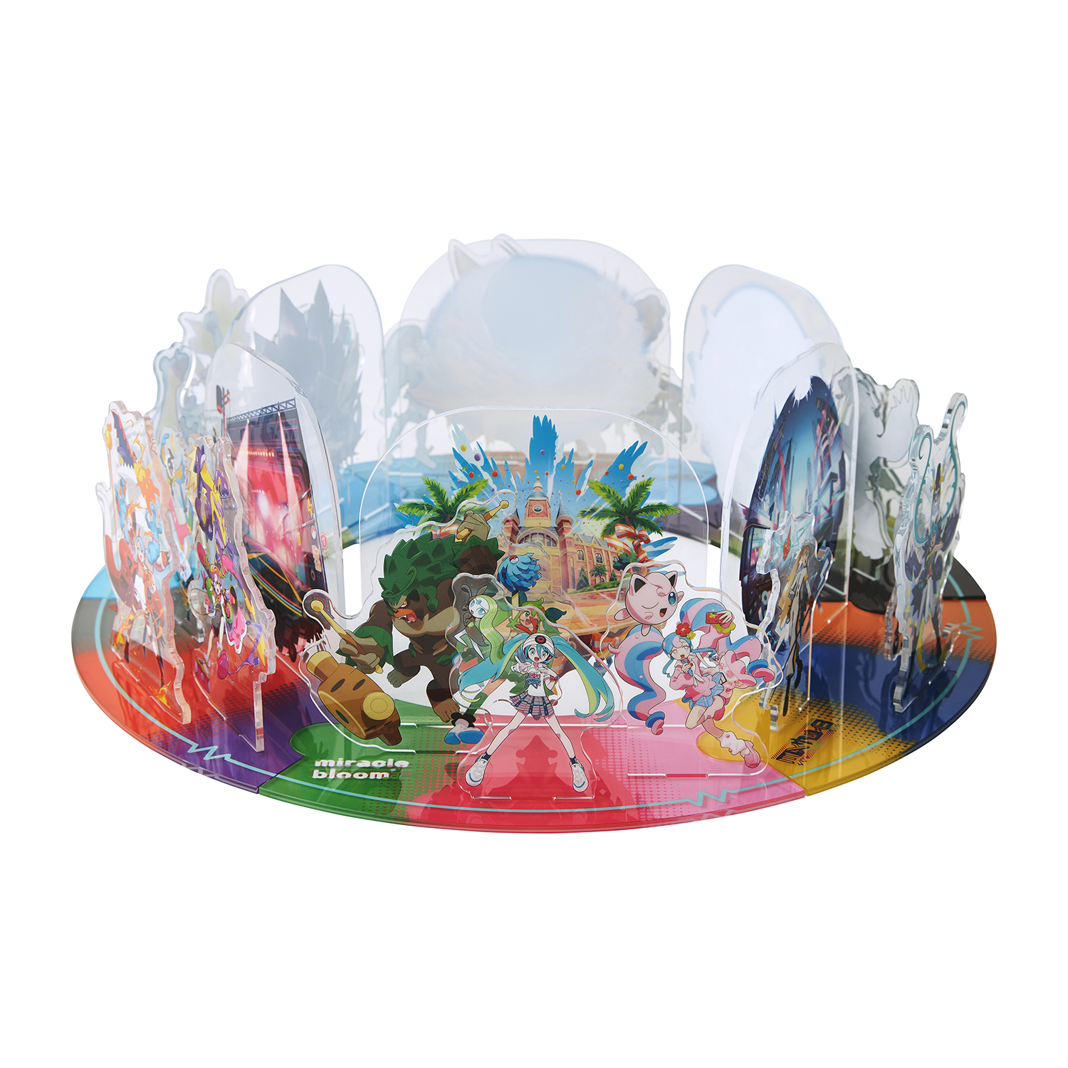 「ポケモン feat. 初音ミク Project VOLTAGE High↑」、通称「ポケミク」で公開された「18タイプのポケモントレーナー・初音ミク&相棒ポケモン」が、6つのステージに分かれてライブをしているようすが描かれているよ。
