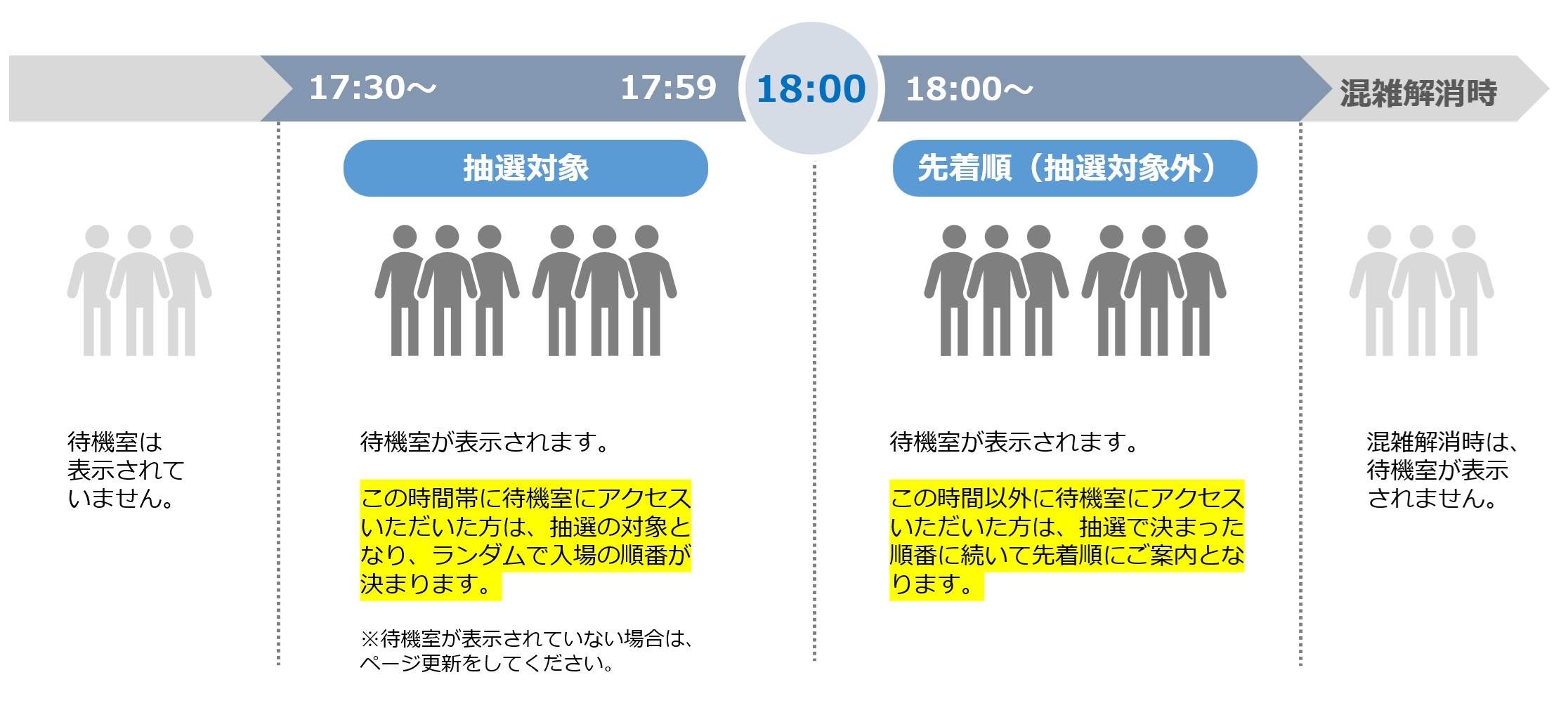 ※17時59分までにアクセスいただいた抽選順のお客様の後に、先着順でご案内いたします。