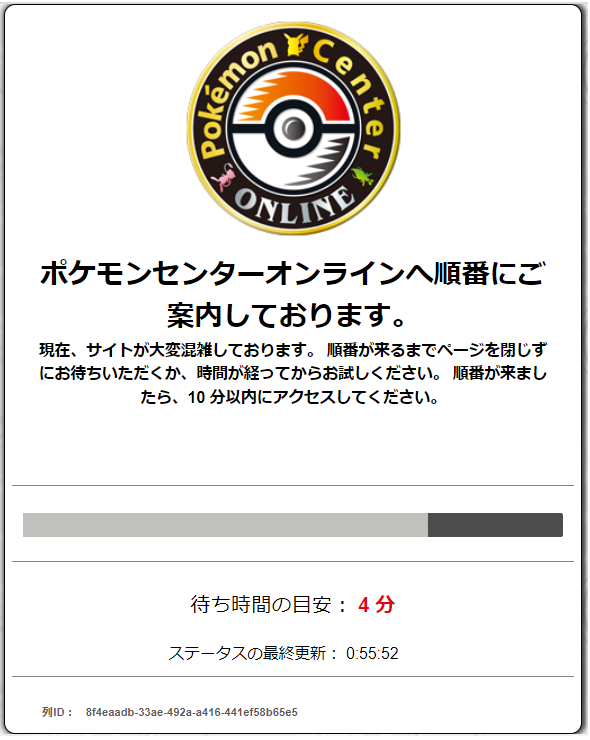 ポケモンセンターオンラインにアクセスいただきましたお客様全員に、仮想待合室の準備画面が表示されます。
